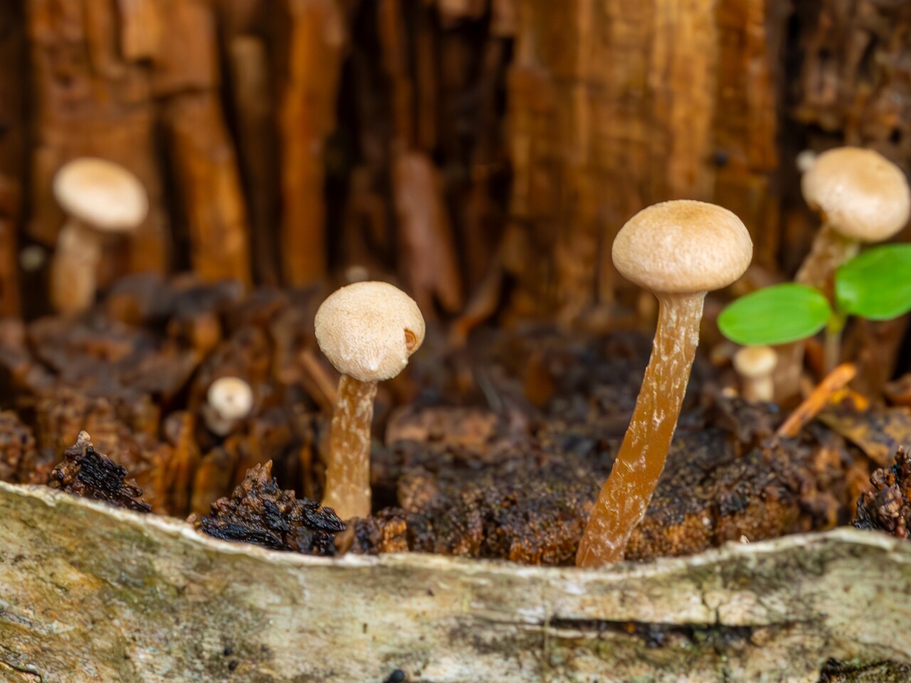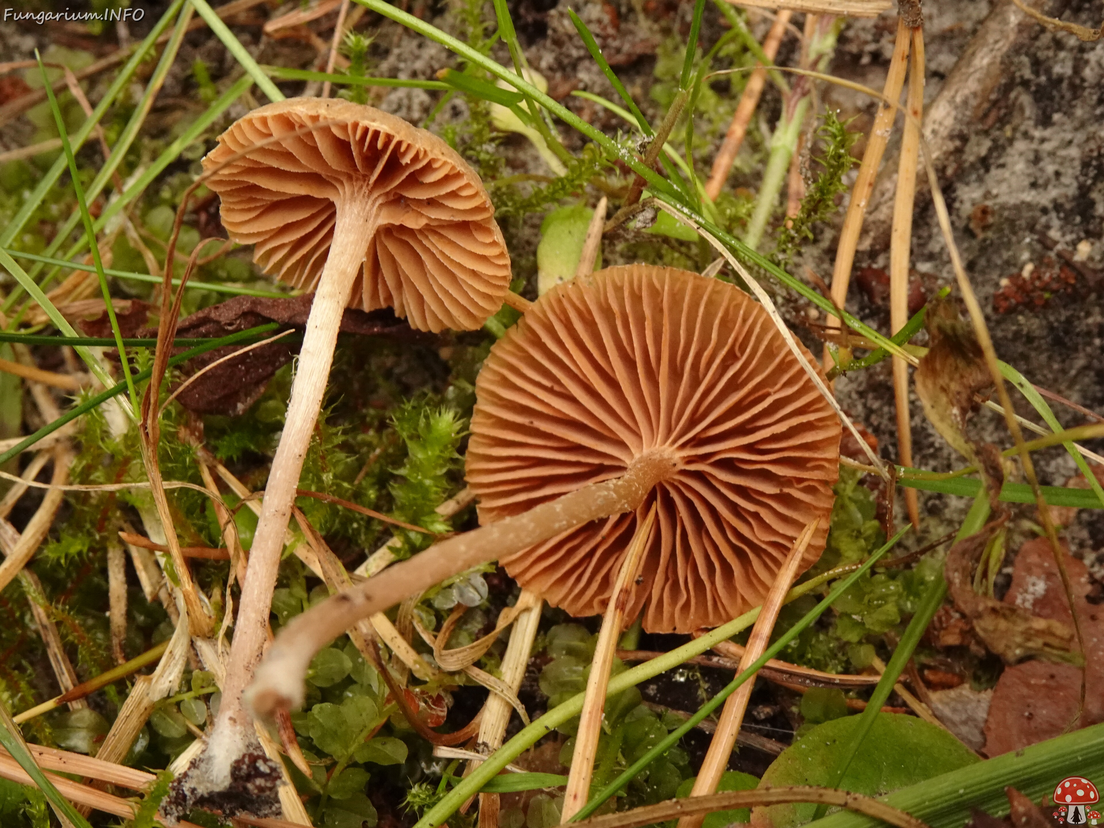 The cap is convex when young, becoming flatter with age, and sometimes features a small central umbo. The gills are adnate to adnexed and are pale brown to cinnamon in color, while the stipe is slender, measuring 2-6 cm long and 0.1-0.3 cm thick, and is often reddish-brown at the base, fading to a paler color towards the apex.