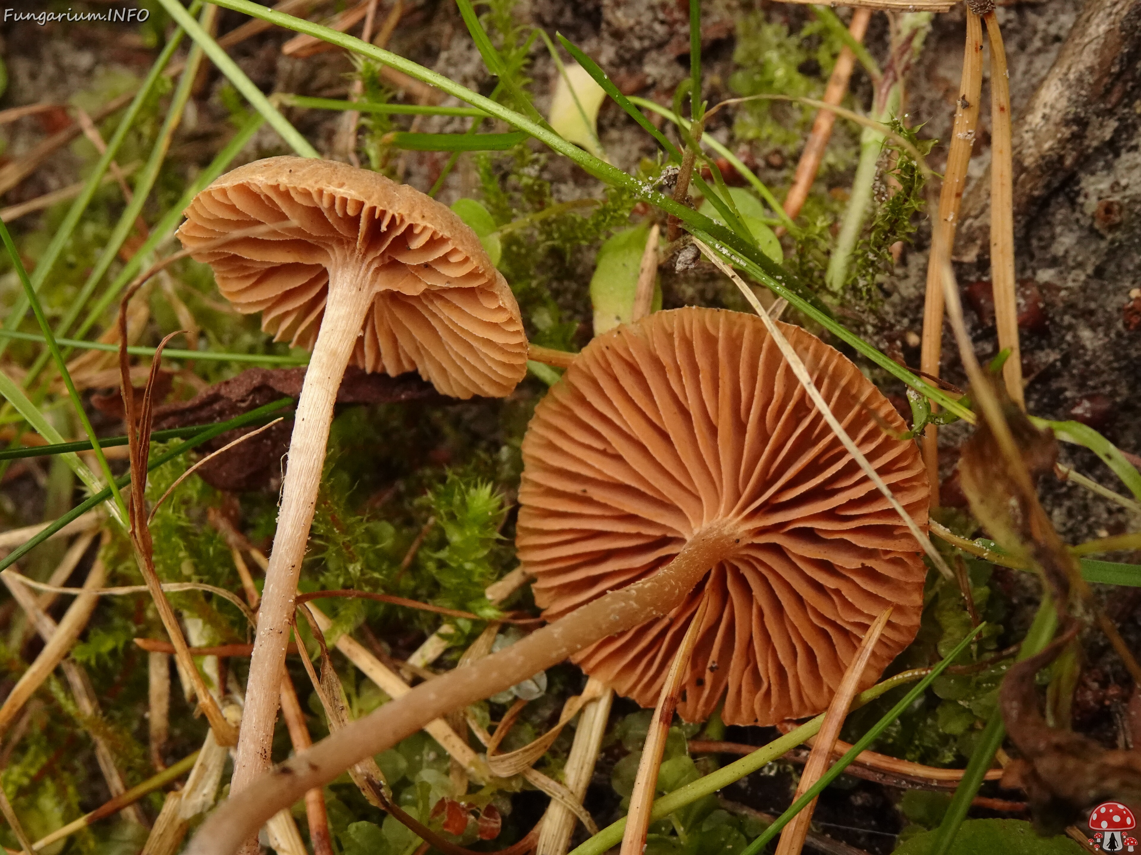 The cap is convex when young, becoming flatter with age, and sometimes features a small central umbo. The gills are adnate to adnexed and are pale brown to cinnamon in color, while the stipe is slender, measuring 2-6 cm long and 0.1-0.3 cm thick, and is often reddish-brown at the base, fading to a paler color towards the apex.