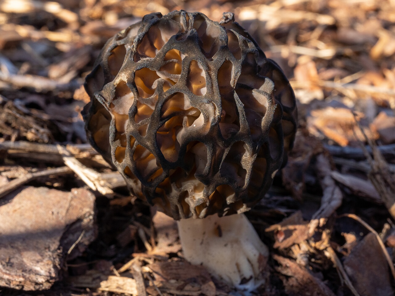 Morchella elata is a saprotrophic fungus, meaning it feeds on decaying organic matter. It is often found in forests, orchards, and other areas rich in organic matter, including burn sites and areas affected by flooding.